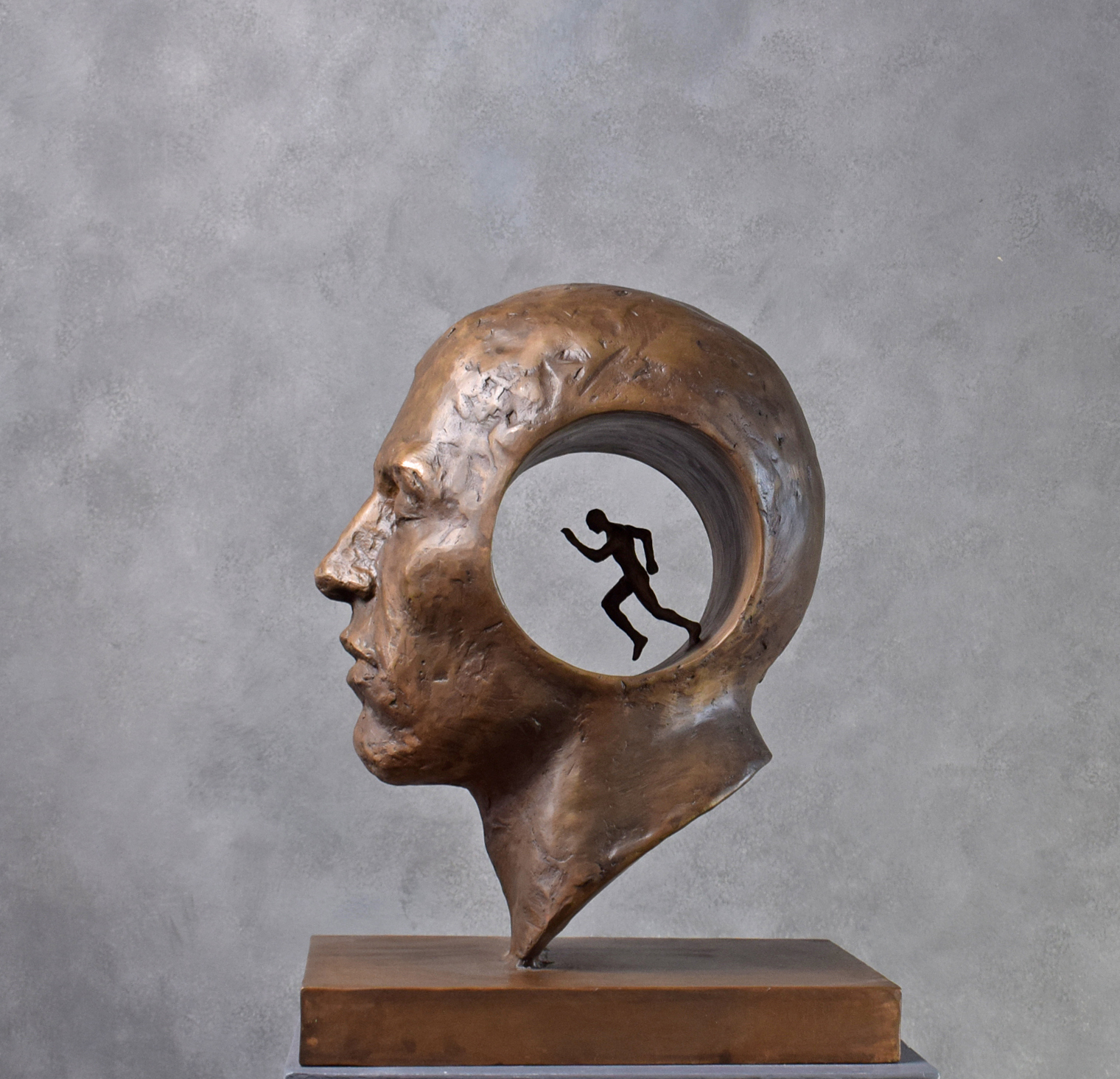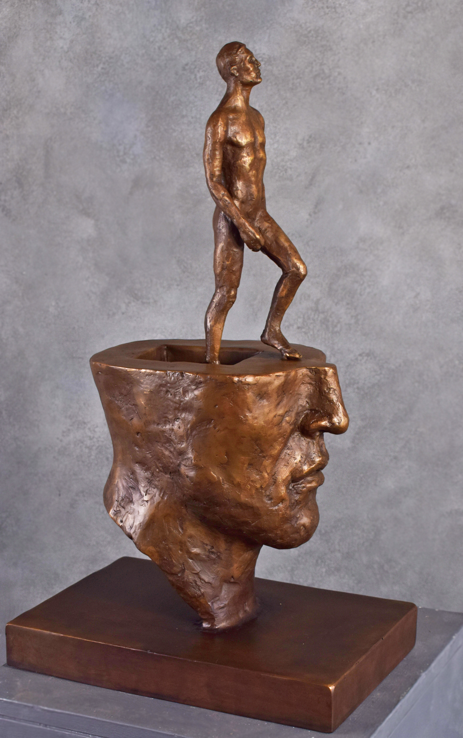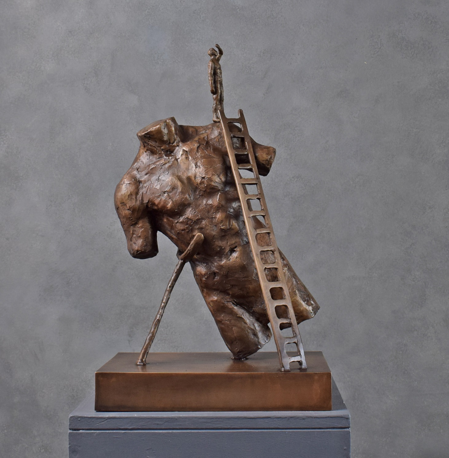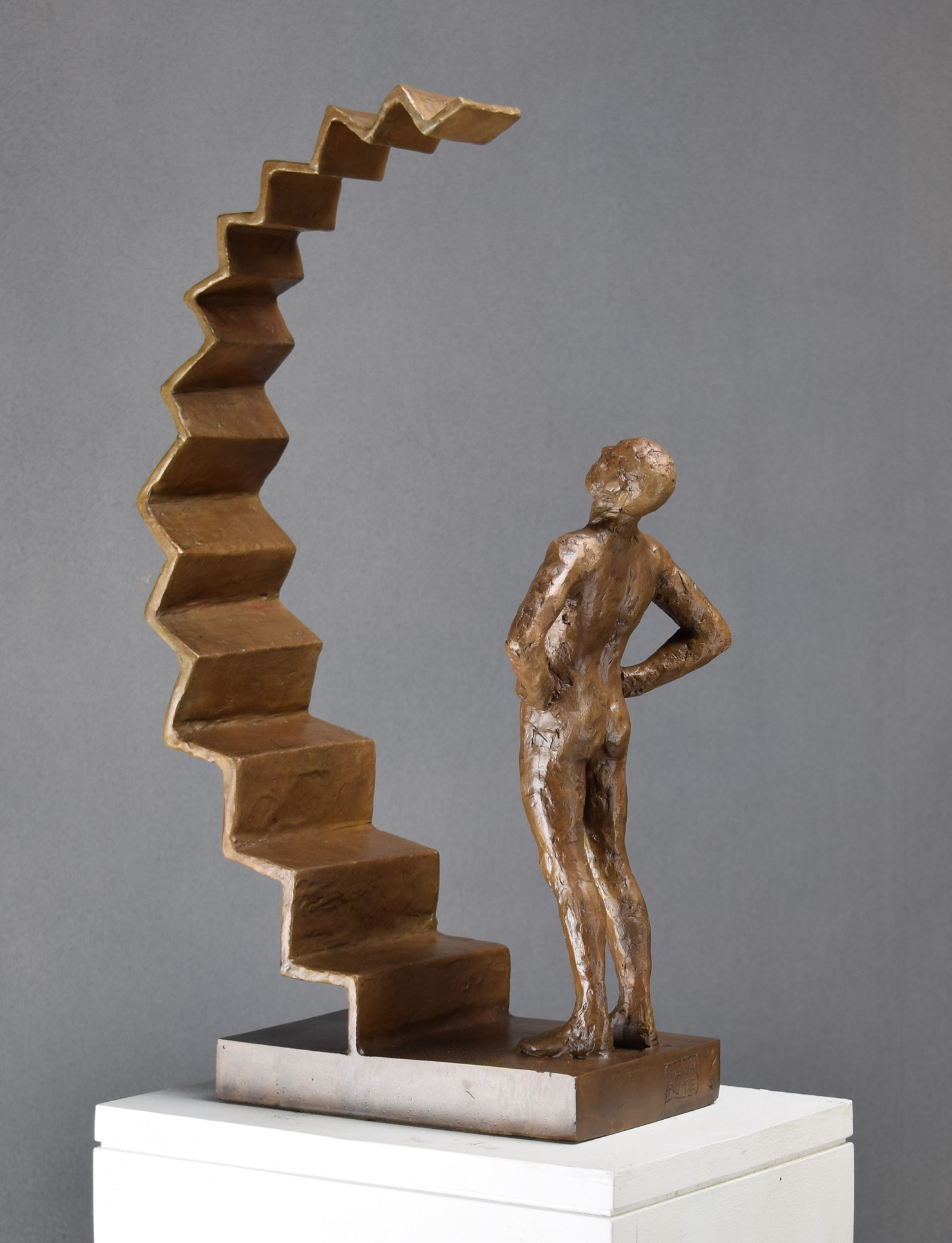A humourous look at a figure contemplating a seemingly immpossible Task. This is surreal testament to persistance. Height 43 cm