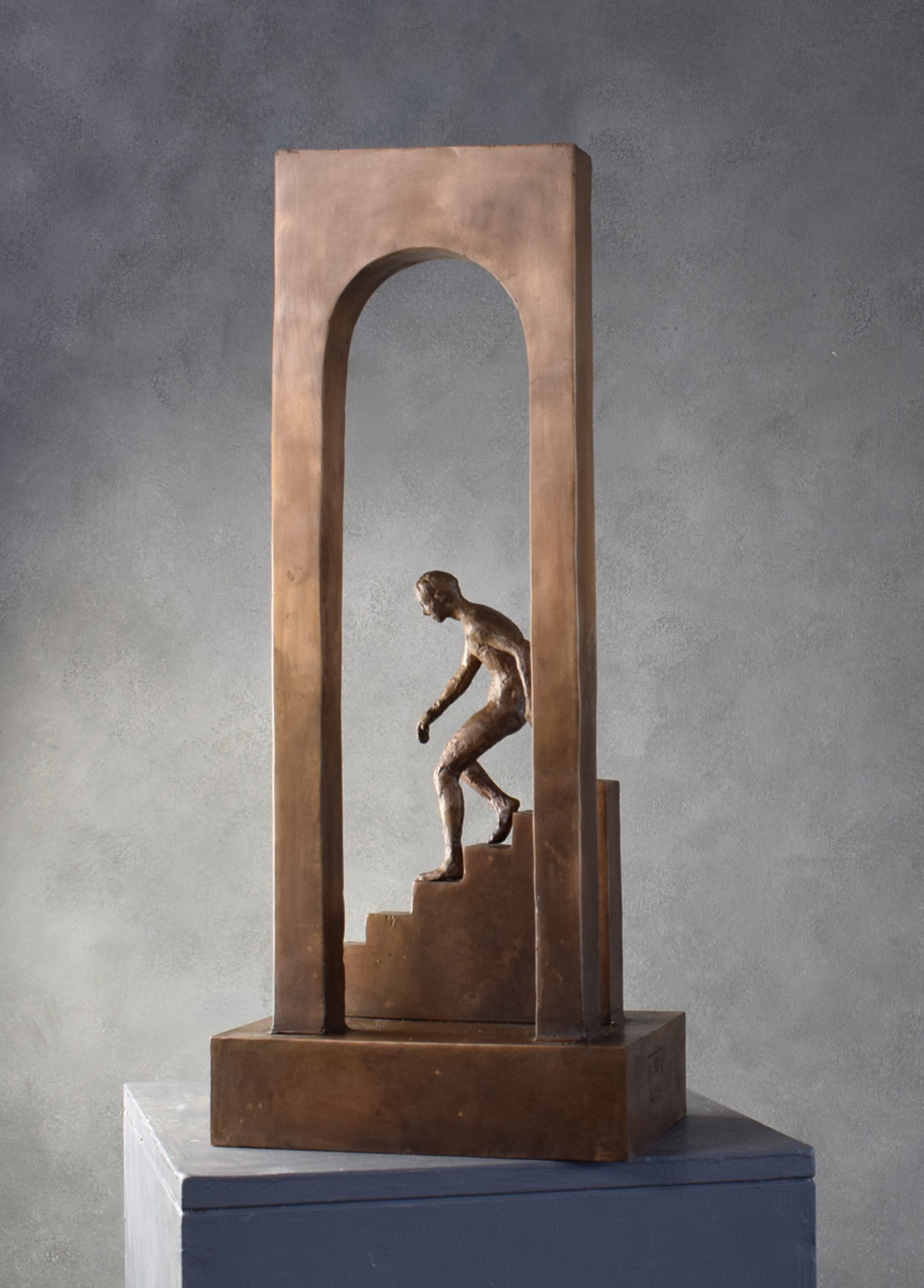 A tall archway dwarfs the trepidatious figure; illustrating the immensity of his task. Height 43 cm