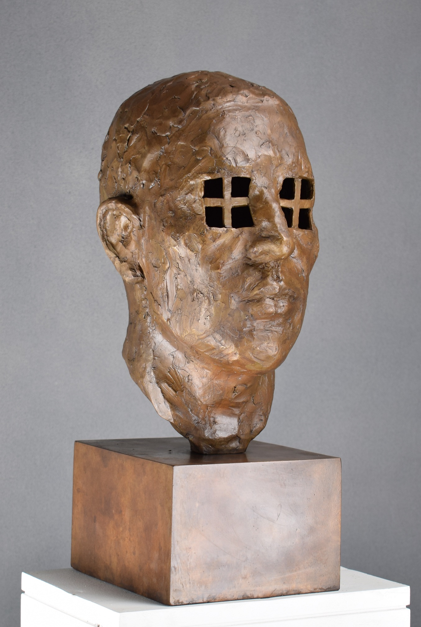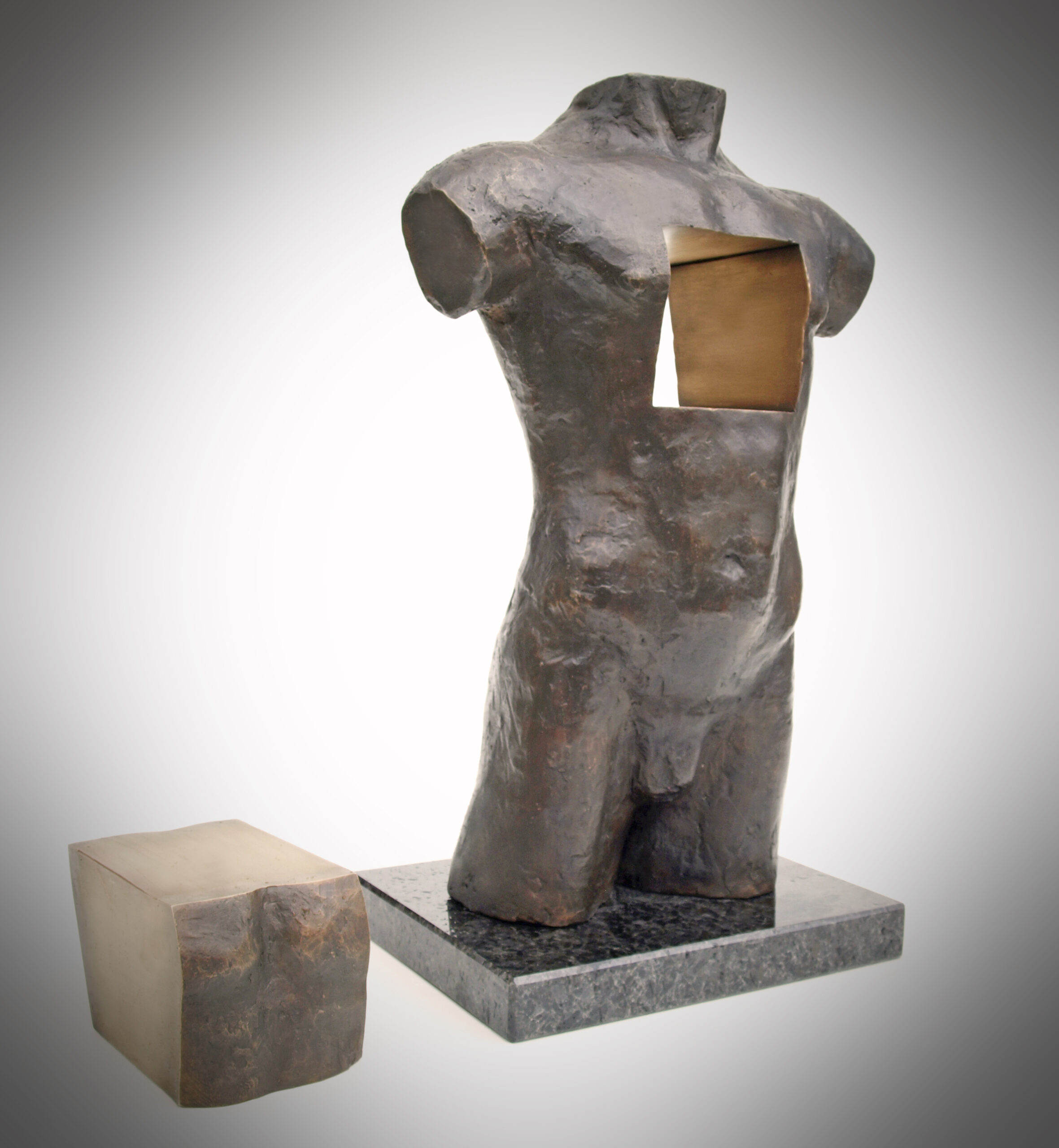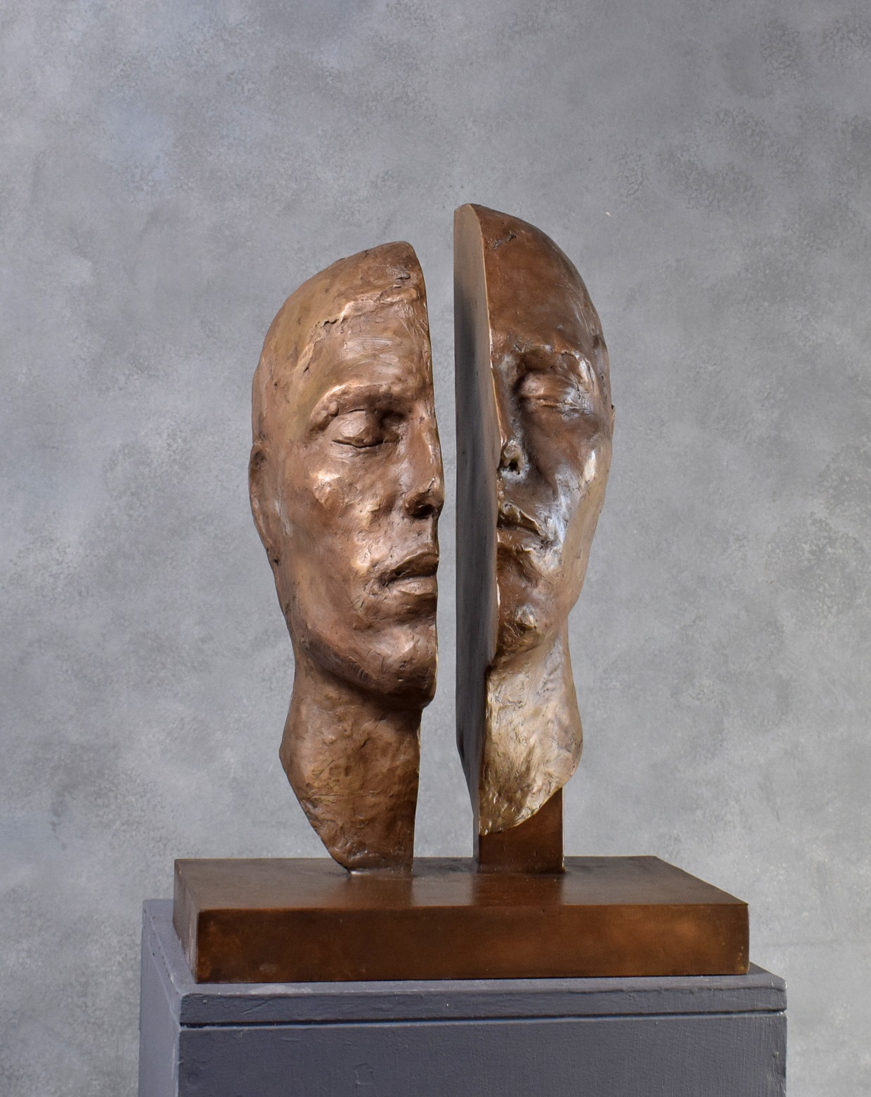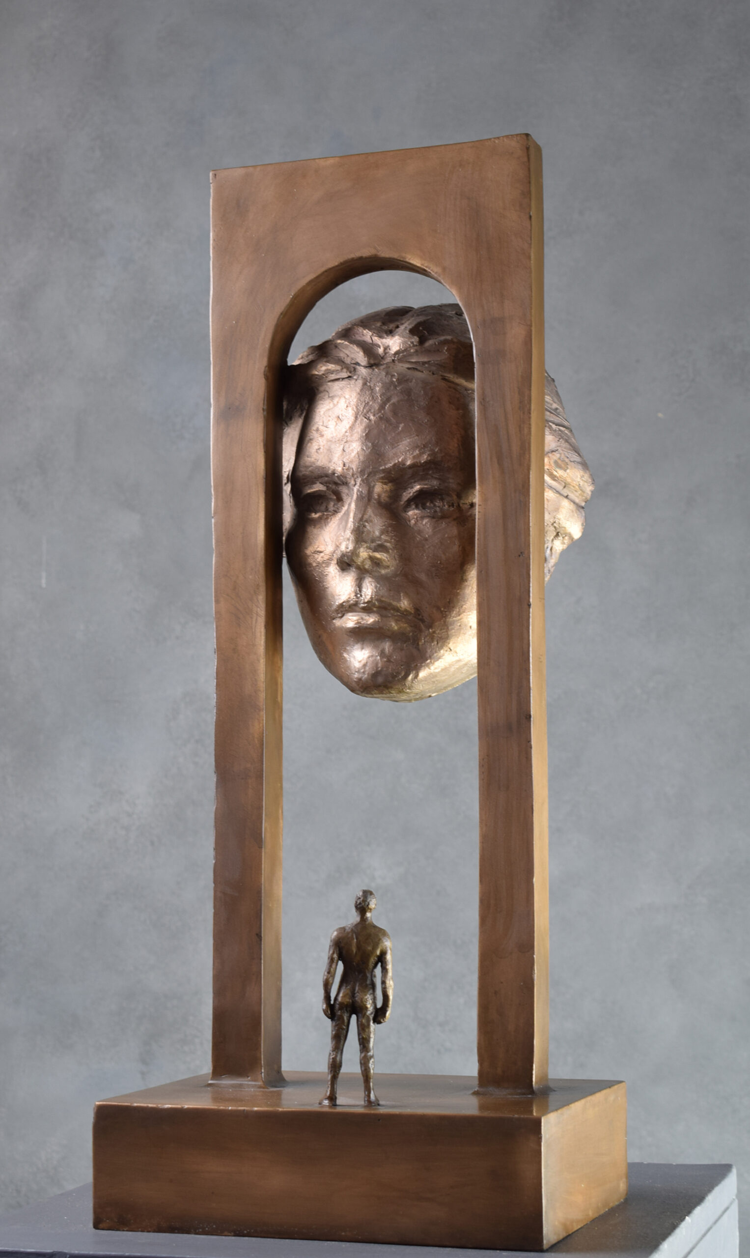 An image of a decaying figure of the past and a figure looking keenly at the new day. Height 49 cm