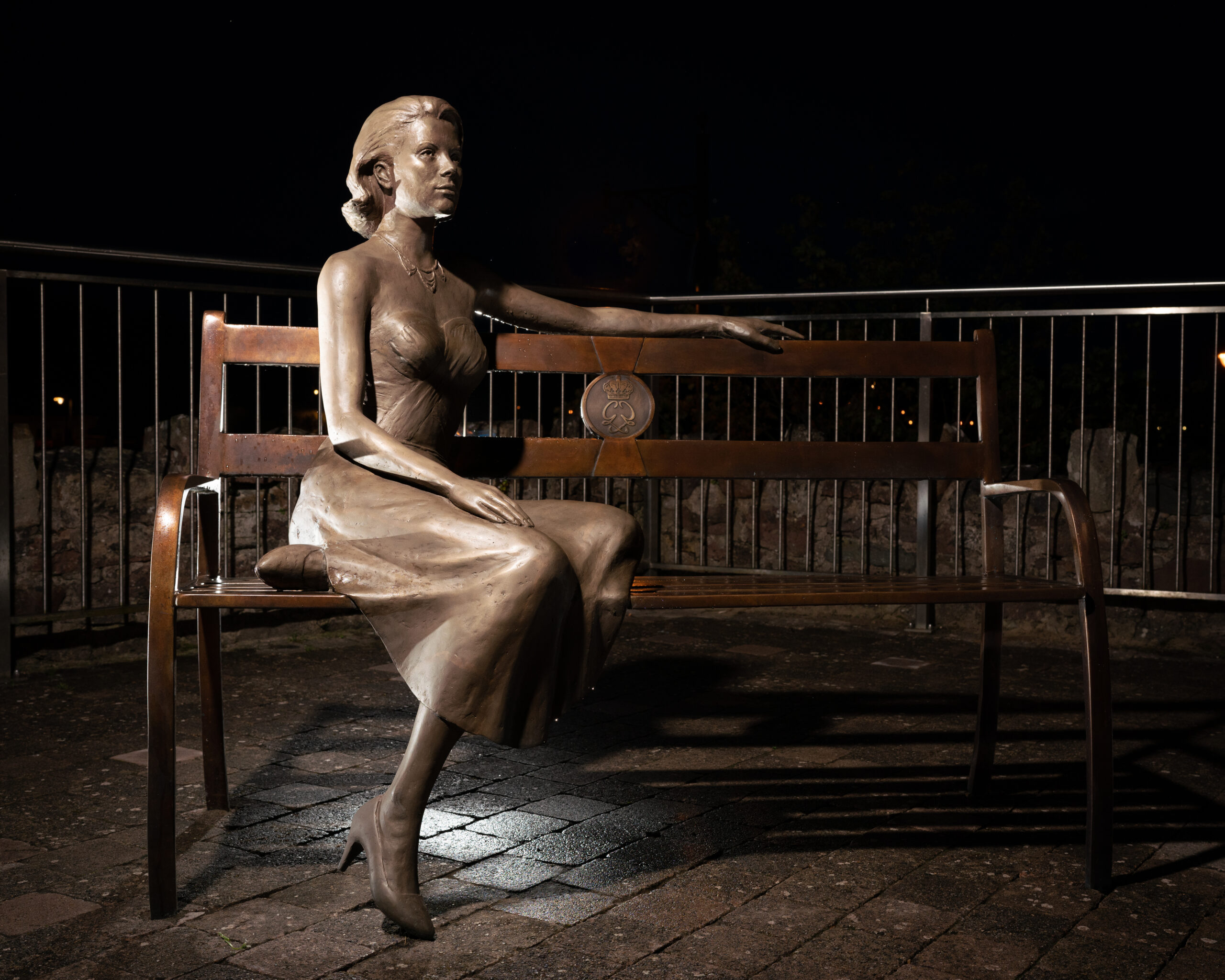 This statue celbrates the connection of Grace Kelly to the town of her hereditary homeplace of Newport, County Mayo. It was unveiled by her son Prince Albert of Monaco. Life size.
