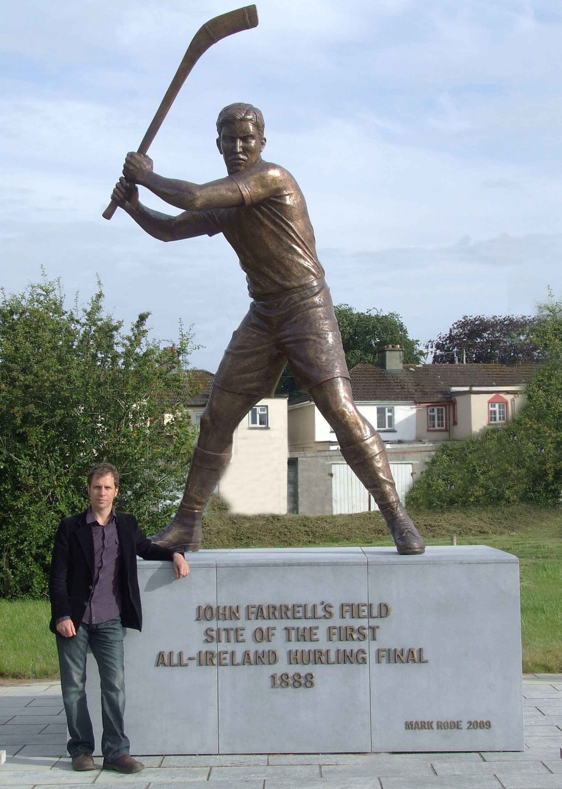 This massive figure represents a marker of the location of the first All-Ireland hurling final held on this location in 1888. Height 4 meters. Location Birr, County Offaly.