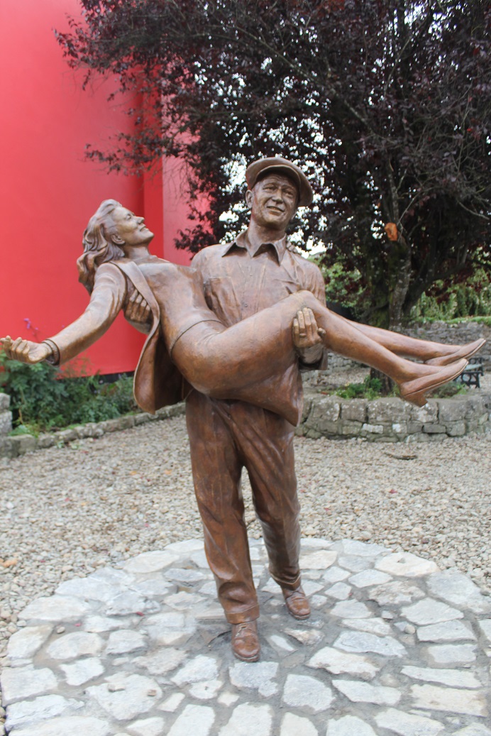This sculpture shows John Wayne holding Maureen O’Hara as depicted in the classic John Ford movie The Quiet Man. It is located in the town of Cong where the movie was filmed. Over life size.