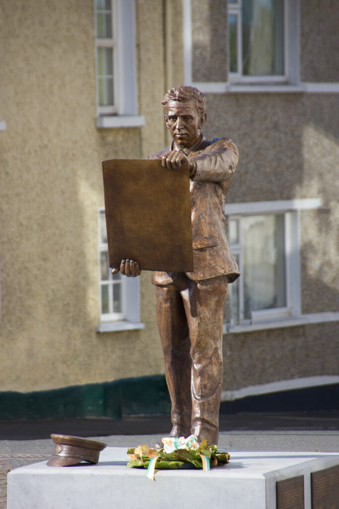 Designed by Sally McKenna and made by Mark Rode, this statue depicts a man leaning against a wall in Kiltimagh, reading the Western People newspaper.