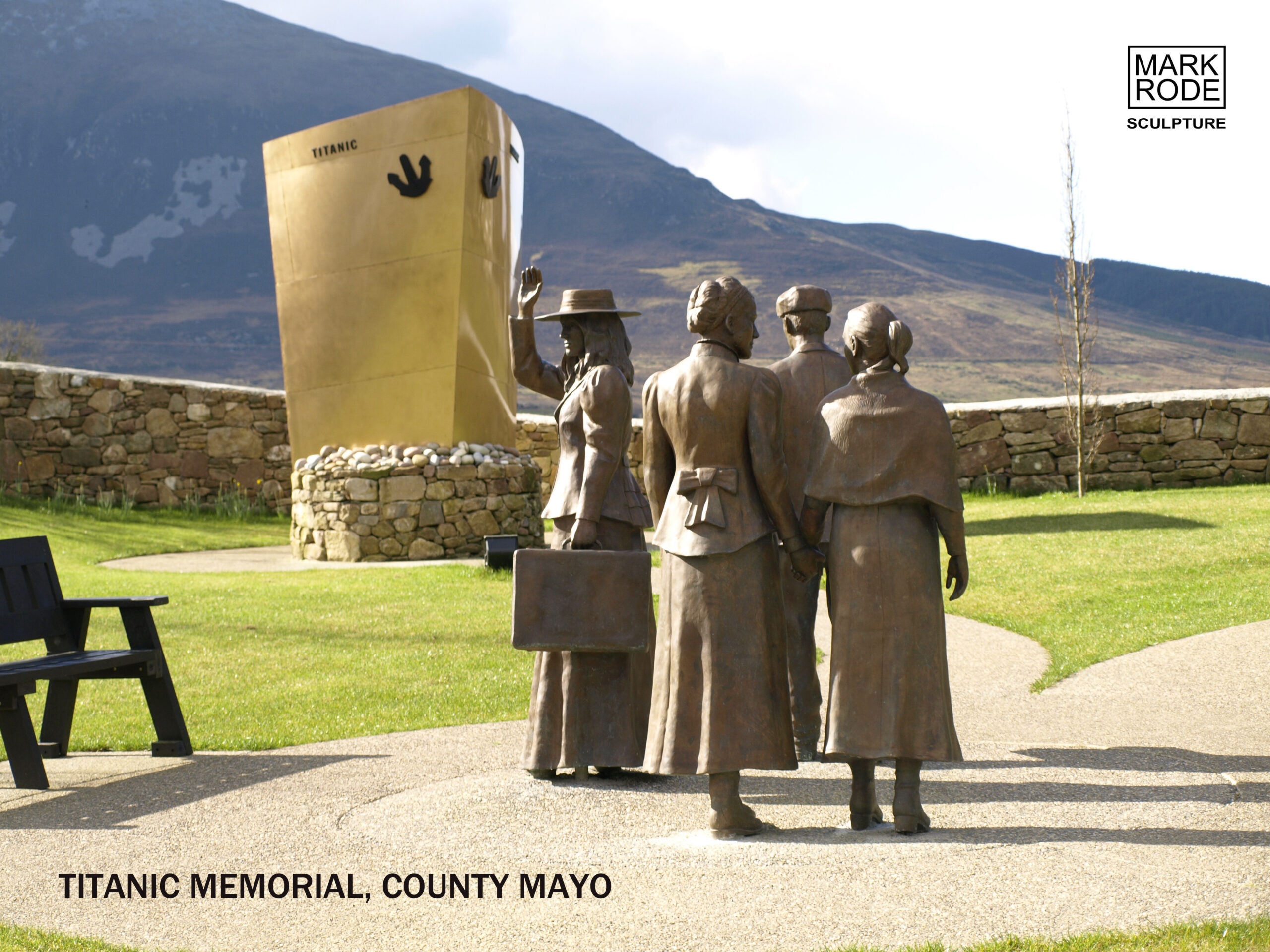 This image of four passengers about to board the Tintanic was created to depect the tragedy that befell the 14 residents of the town of Addergoole. Figures life size, ship 4 meters.